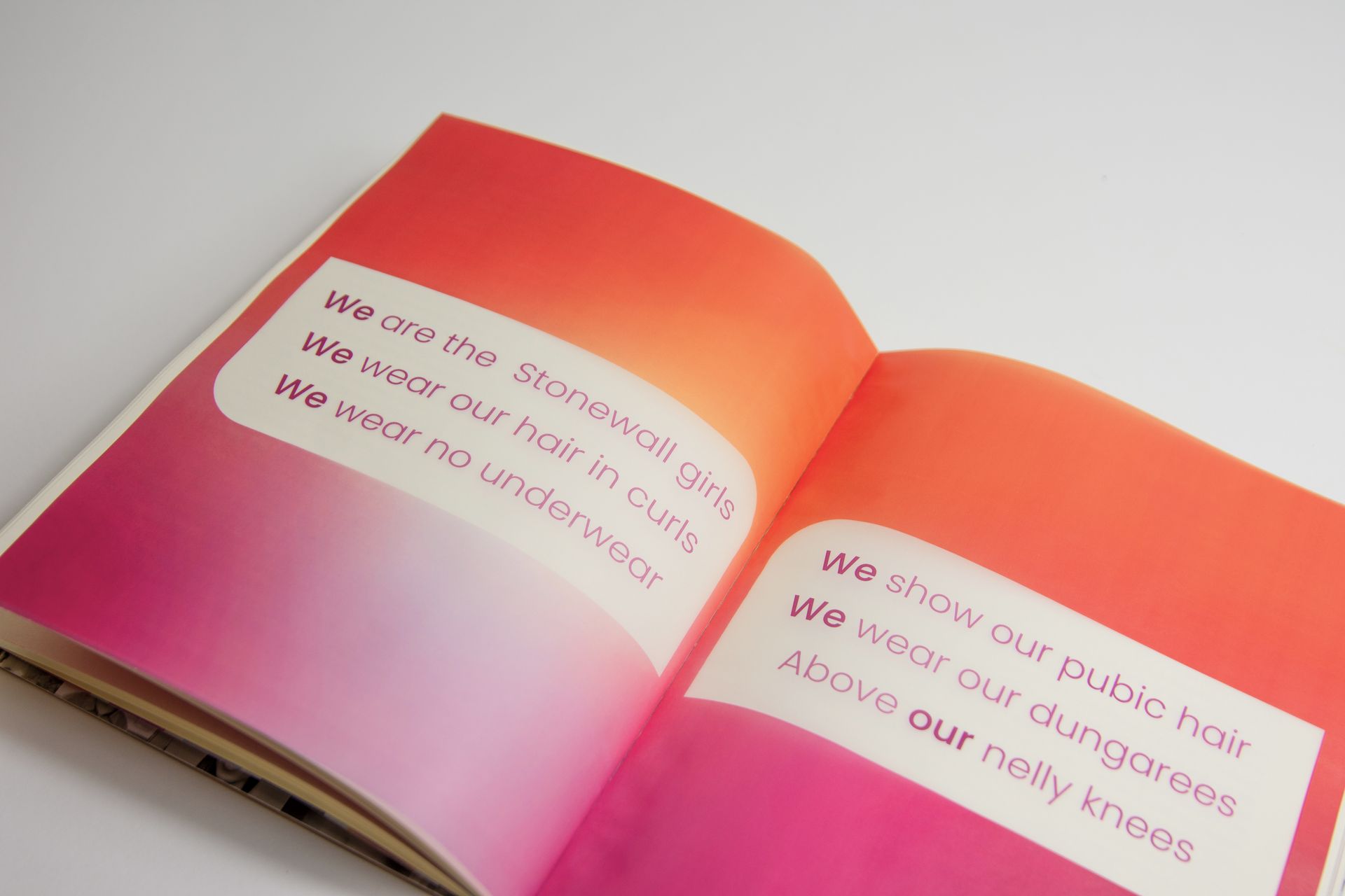 "This project is a visual and conceptual reimagining of Stonewall by Martin Duberman, a pivotal text chronicling the Stonewall Riots and the LGBTQ+ liberation movement. The redesign uses bold, gradient color palettes, striking typography, and archival imagery to capture the energy and urgency of queer activism."
